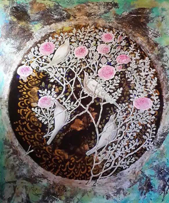بعد از مدتی گالری های نیاوران و جهان نما بنا به دلایلی، تعطیل شدند و من برای ادامه فعالیت های هنری ام به آتلیه شخصی ام برگشتم. در این زمان وارد مرحله جدیدی از هنر شخصی ام شدم که تفاوت چشمگیری با دوره قبلی داشت. مشغول خلق آثاری شدم که در آن ها از کالیگرافی استفاده می کردم و آن چنان مدرن که کاملا جهت مخالف آثار نگارگری ام بودند و خودم از دیدن این آثار به طرز عجیبی شگفت زده می شدم.