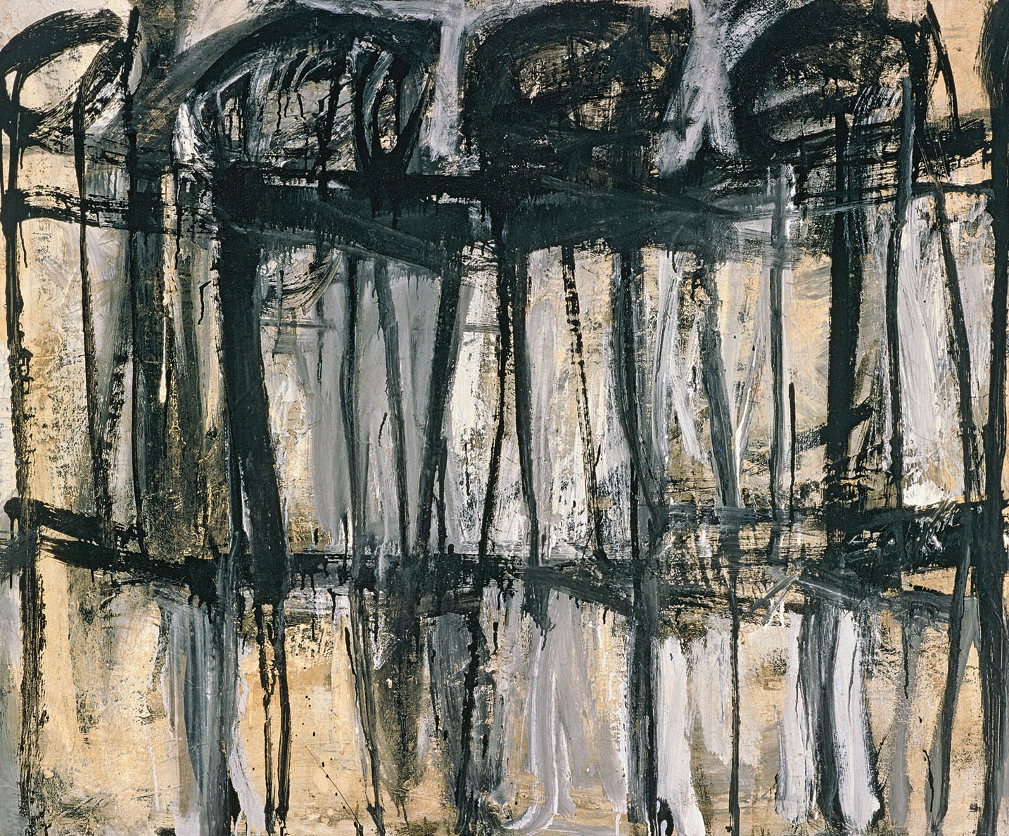 خطوط ناخوانا در نقاشیهای آبسترهی "تومبلی" با رنگ و روغن و مداد و پاستل و رنگهای محدود کار شدهاند.