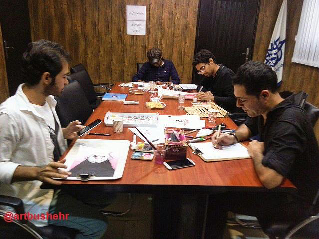 در این کارگاه هنرمندان بوشهری تصاویری از جنایت های داعش به همراه قربانیان و مظلومان گرفتارشده در بندِ تروریست ها به تصویر کشیدند.
