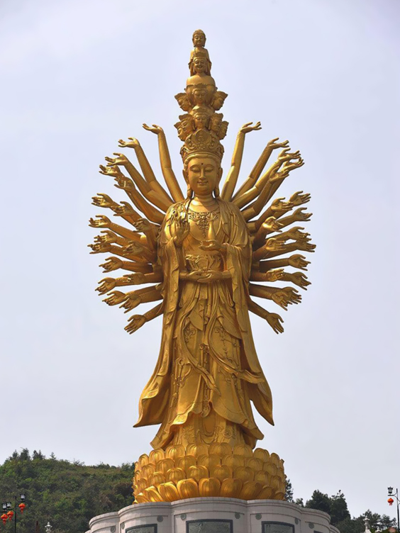یک مجسمه برنزی طلایی رنگ از الهه رحم و شفقت است. ساخت این بنای تاریخی شش سال دولت چین را درگیر کرد. این مجسمه به منظور برکت بخشیدن به تمام دنیا دارای سه چهره متفاوت است.