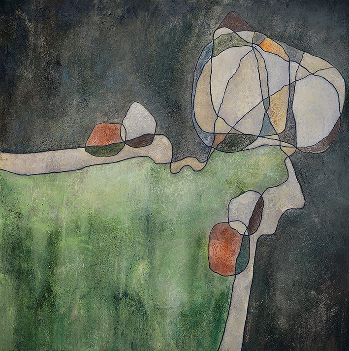 بر پایه گونهای از افسانهها، انسان از نژاد سنگ است؛ سنگ رنگ و بوی هستیِ انسان را در خود حمل میکند. سنگ و انسان در تعاملی پایانناپذیر، سیّال و مضاعف در حرکتاند تا هستی خود را بازیابند. سنگ از عناصر طبیعت است که با وجود شکسته و خردشدن همچنان هویت شکل و هستی آن پابرجاست، از این روست که در مجموعه مغاک، سنگ ناخودآگاه یا هوشمندانه، در میانه درهها حضور دارد و از ریزترین تا بزرگترین اجزاءاش در پیوندی گسستناپذیر در جزء و کلیت هستی اثر، خودنمایی میکند.
